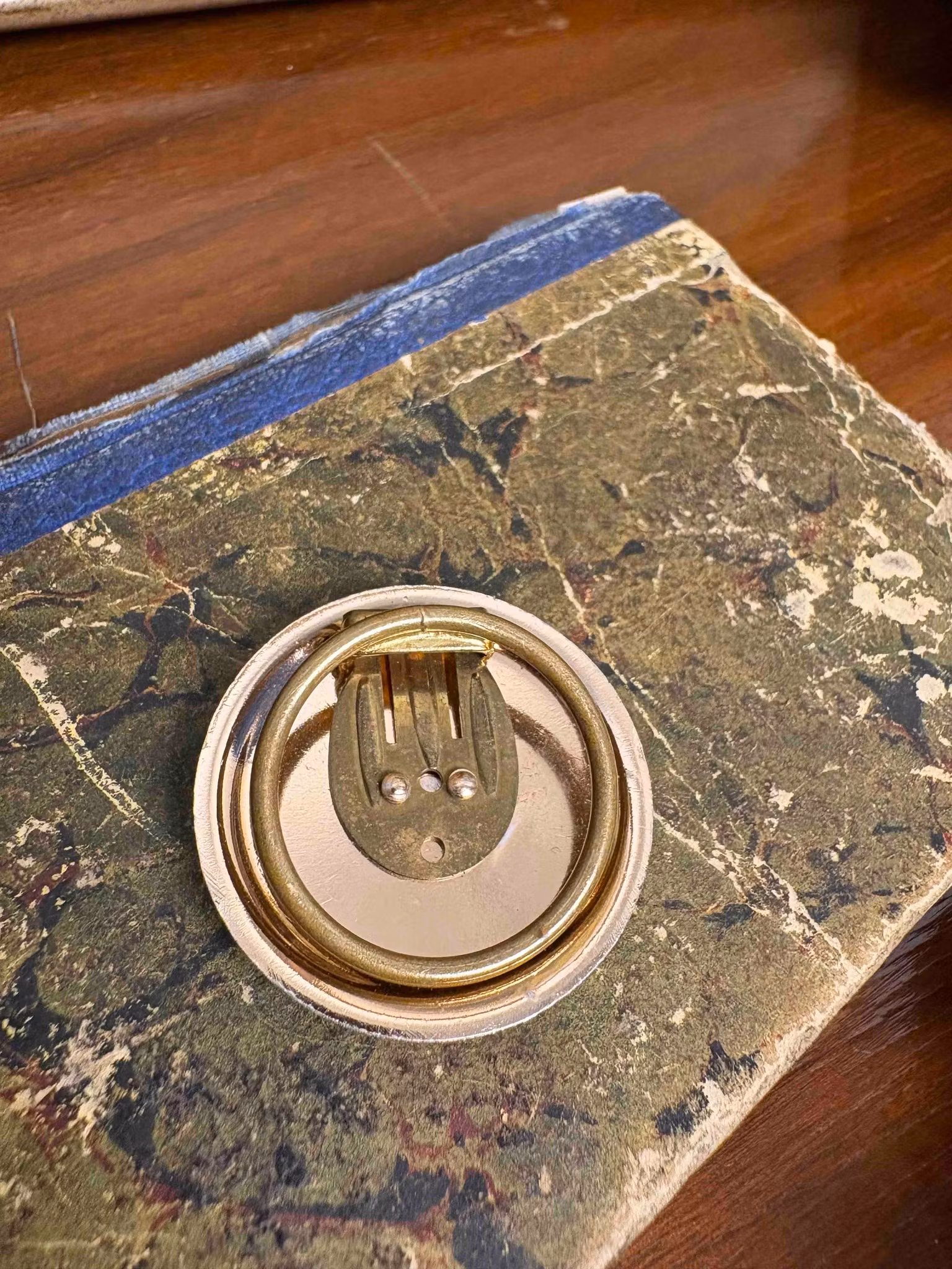 Vacker vintage sjalclips, ca 3,5 cm i diameter och i fint bruksskick. Elegant detalj som håller sjal eller halsduk på plats och tillför karaktär till stilen.
