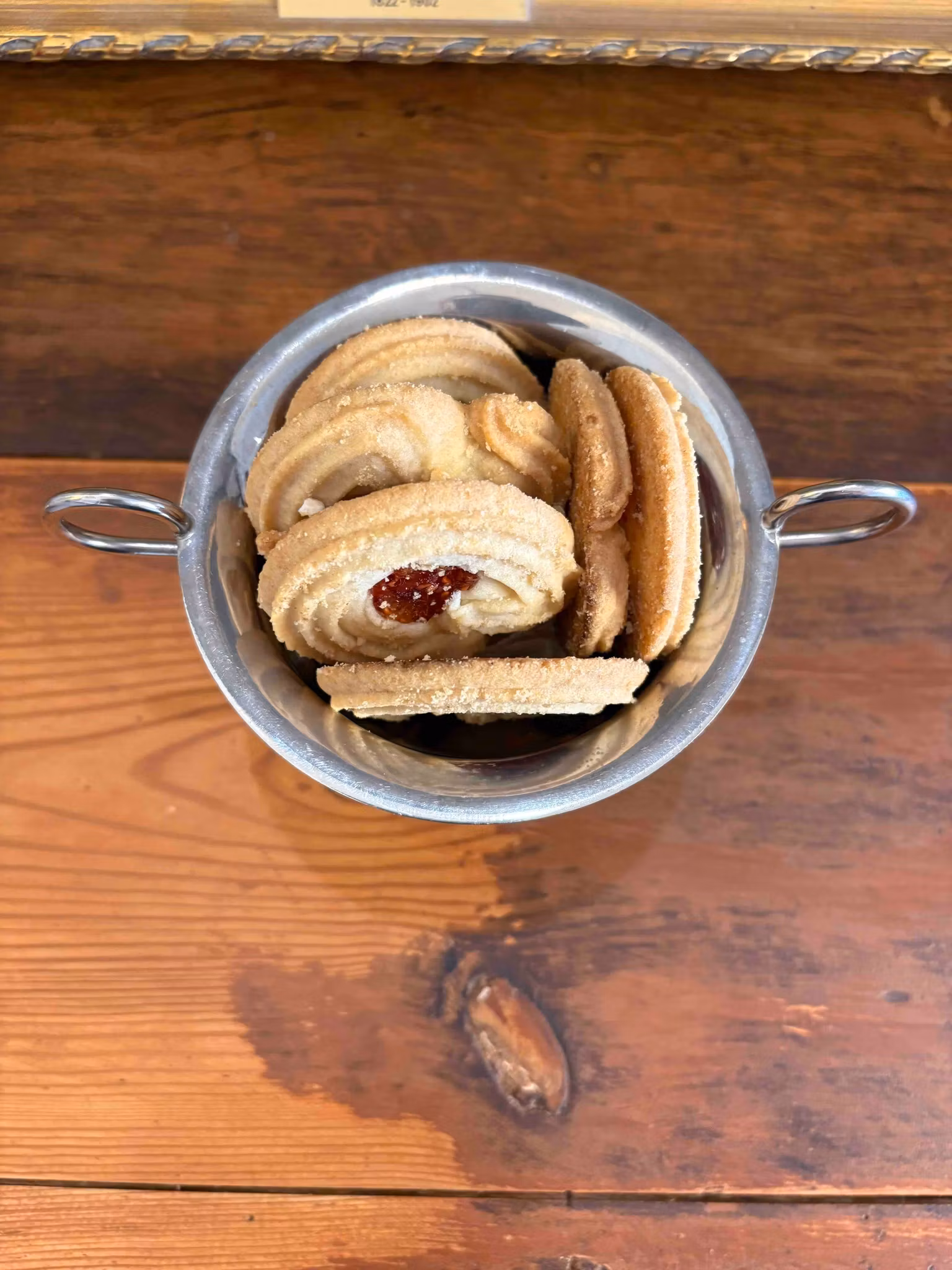 En vacker skål som vilar på sin fot och ger serveringen en mjuk höjd och närvaro. Den blanka metallen fångar ljuset och skapar ett levande uttryck, medan formen känns både klassisk och inbjudande.