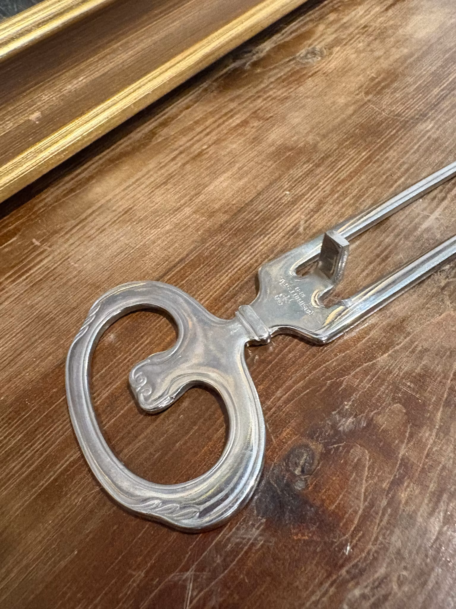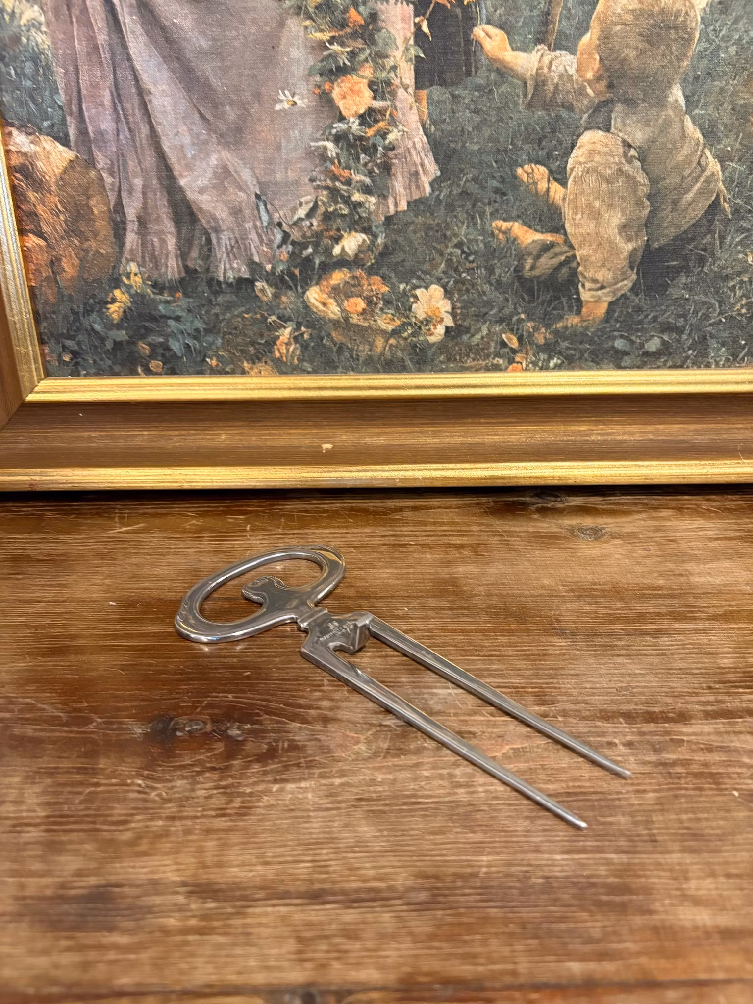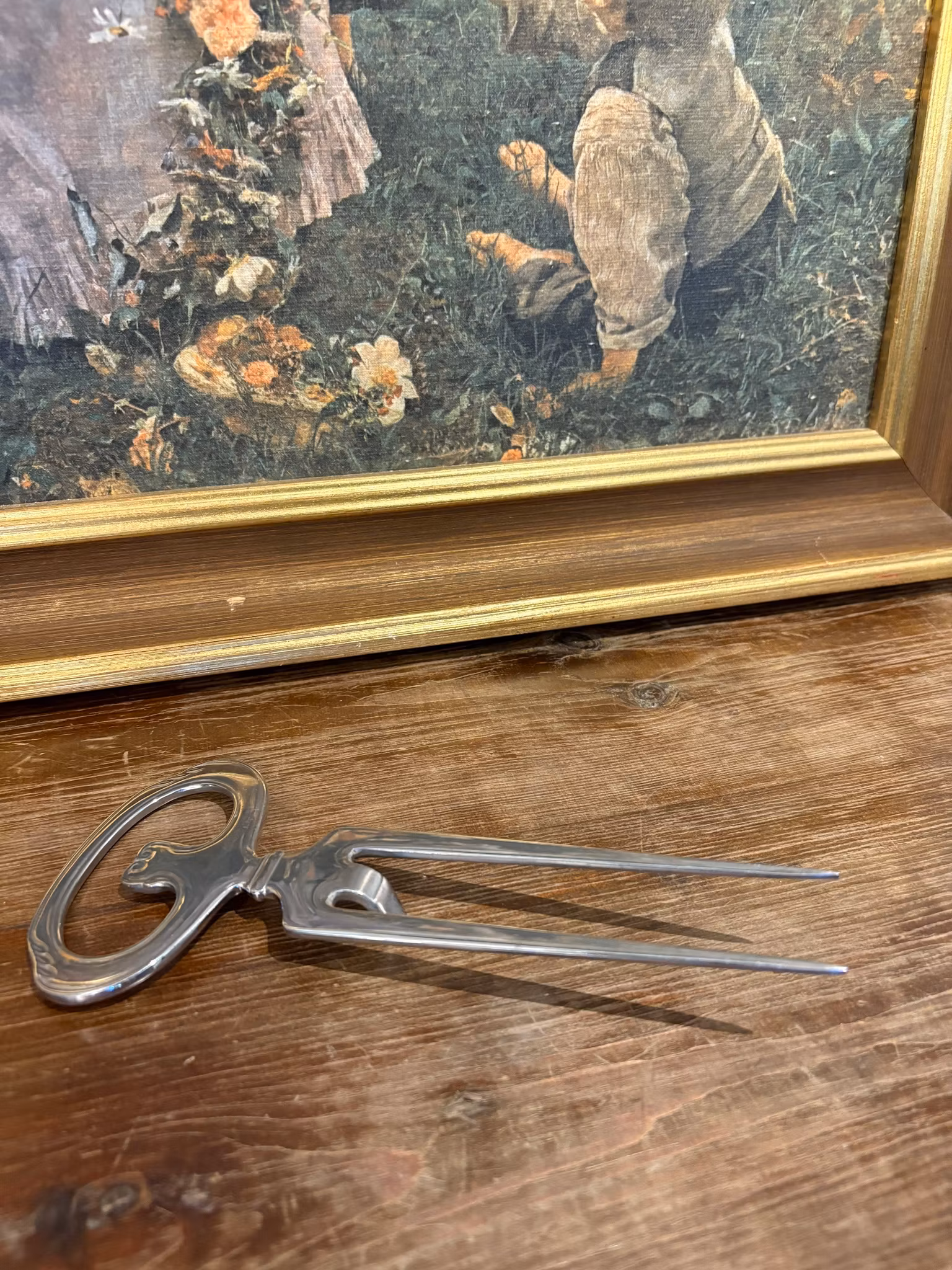 Vacker skinkgaffel i metall med klassisk design – perfekt för julskinkan och julbordet. Ett fint vintagefynd som ger extra stämning till julens servering.