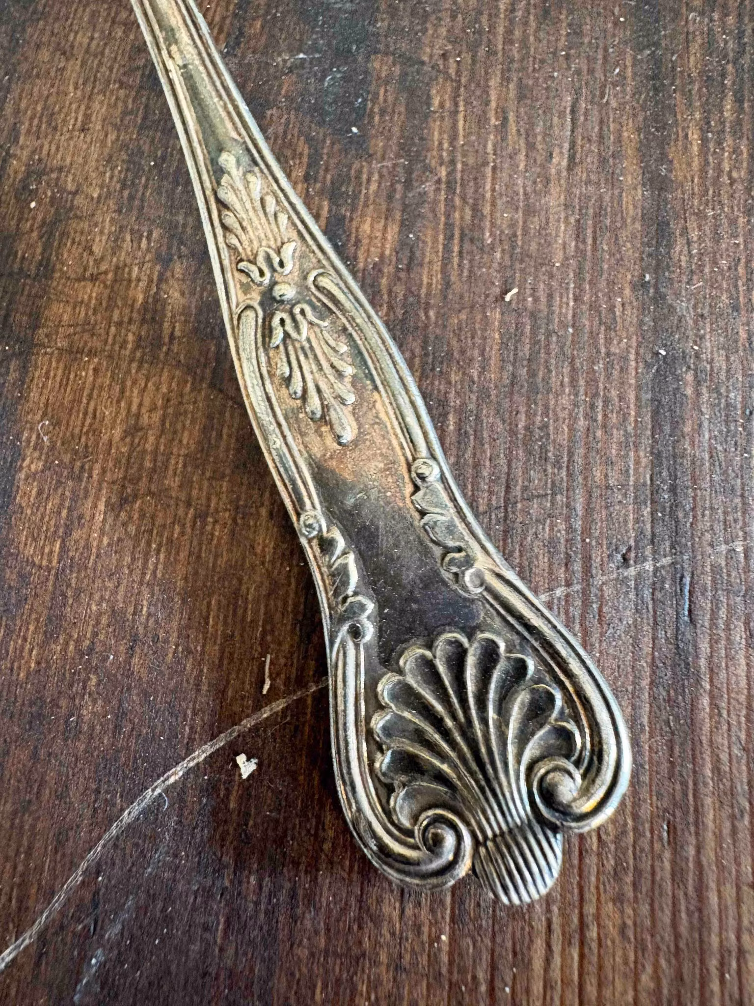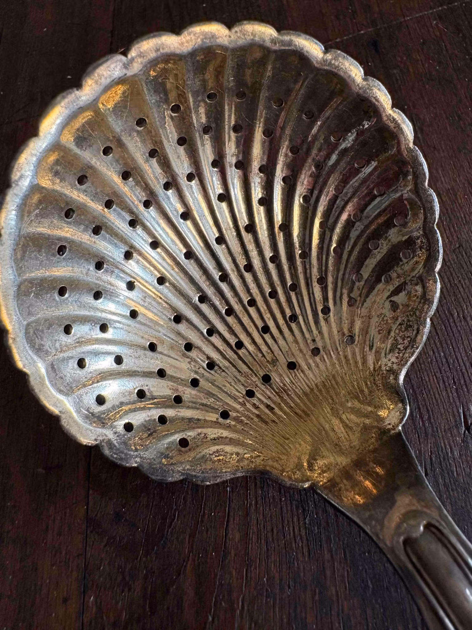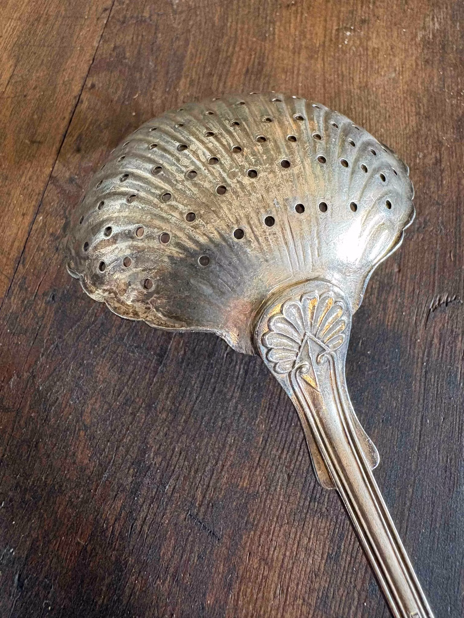 Vacker sockerströare i nysilver, ca 21,5 cm lång. Klassisk modell i fint bruksskick med vacker patina.
