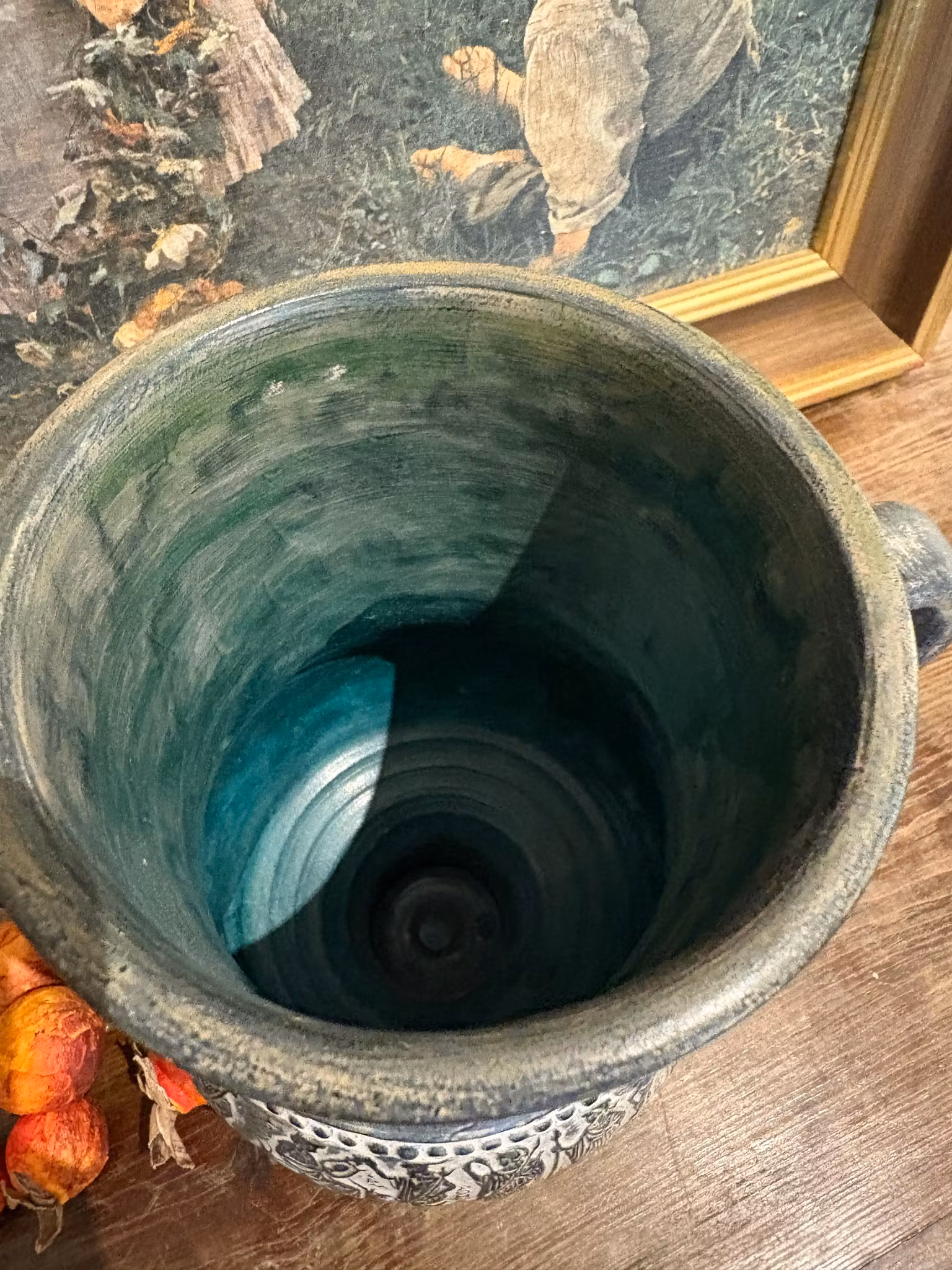 Vacker handgjord urna i grön ton. Passar perfekt på byrån, hyllan eller fönsterbrädan – ett tidlöst och elegant inslag i inredningen.
