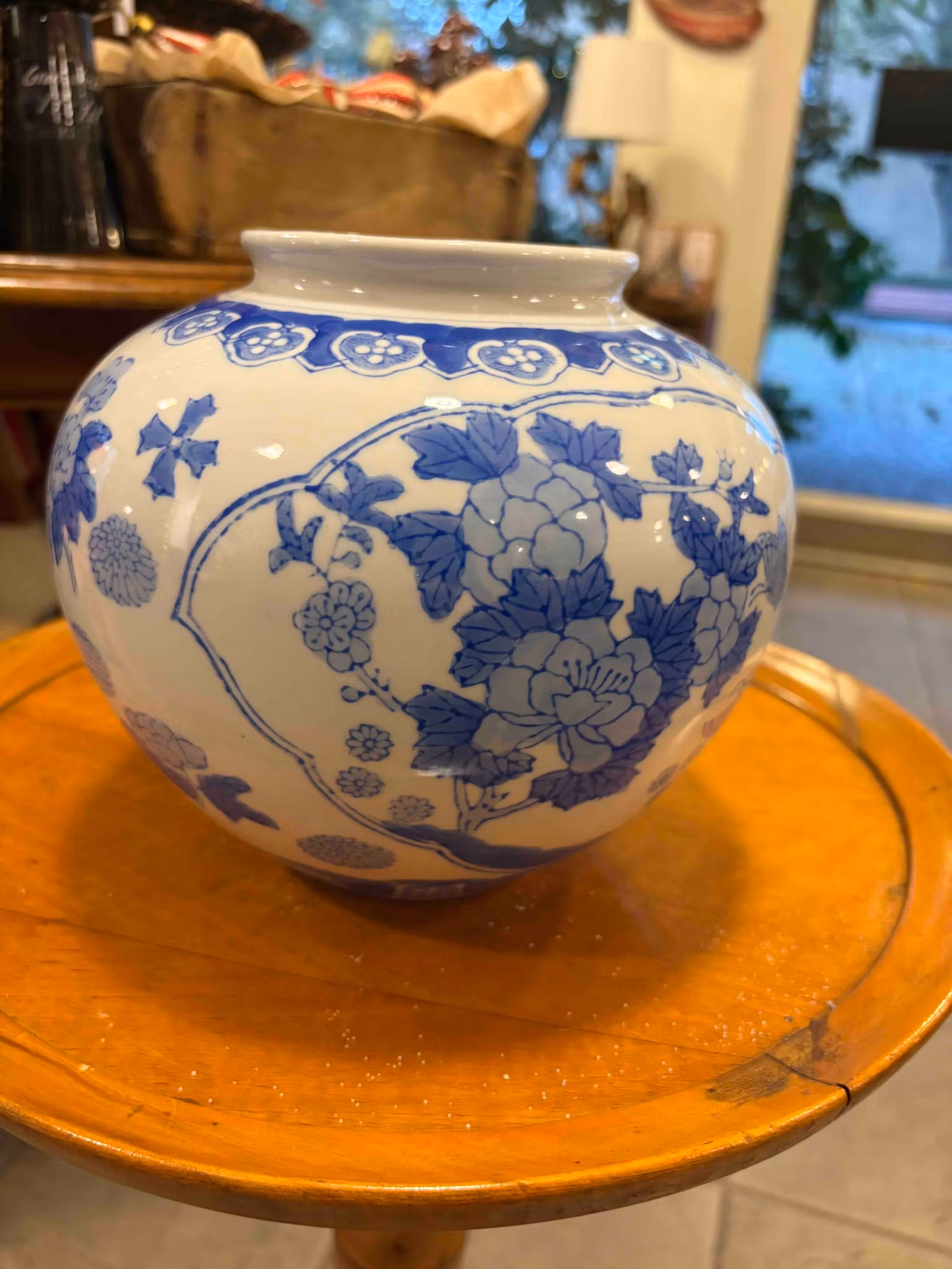 Otroligt vacker urn i blåvitt porslin. Underbar som den är eller med blommor.