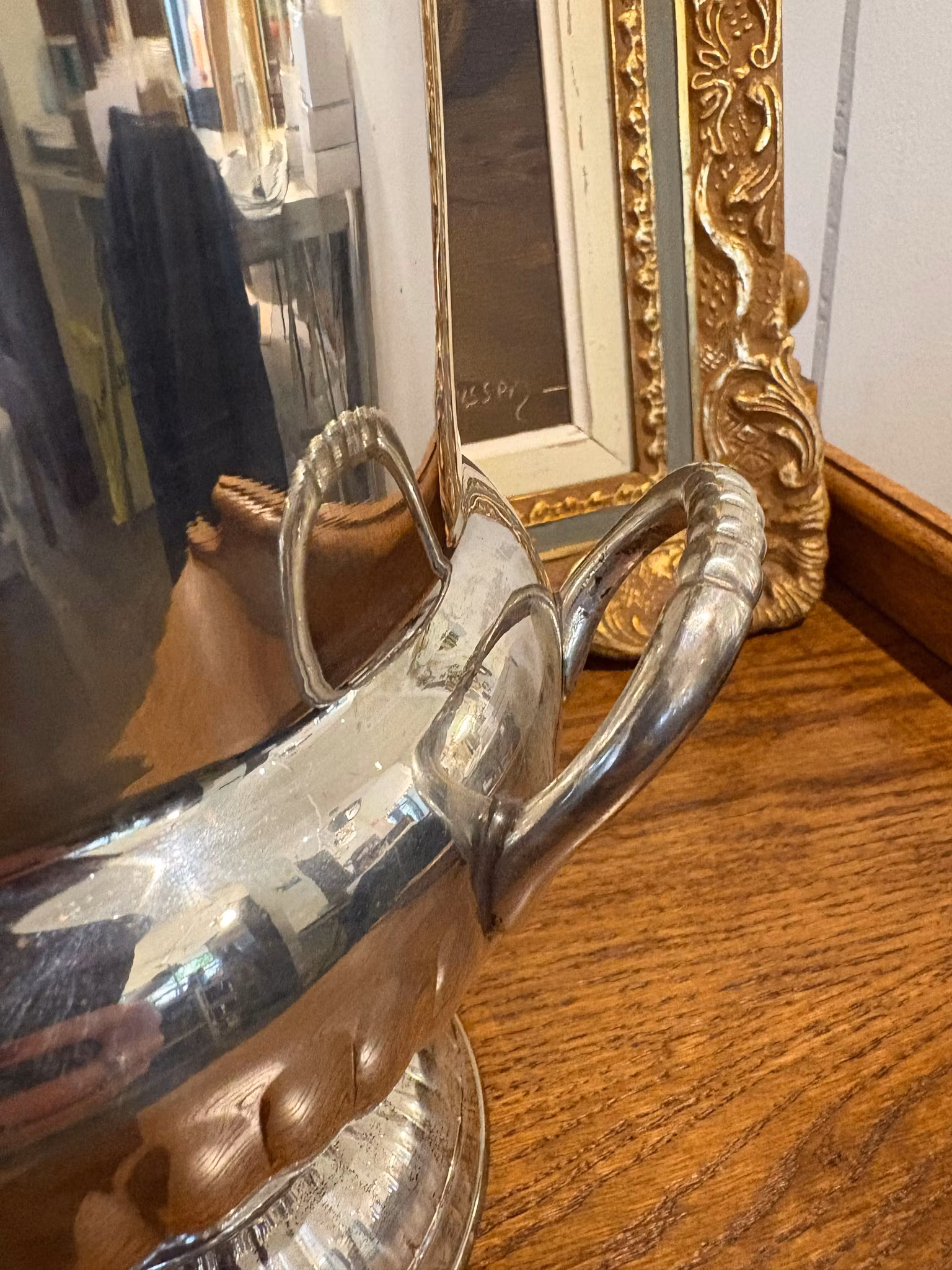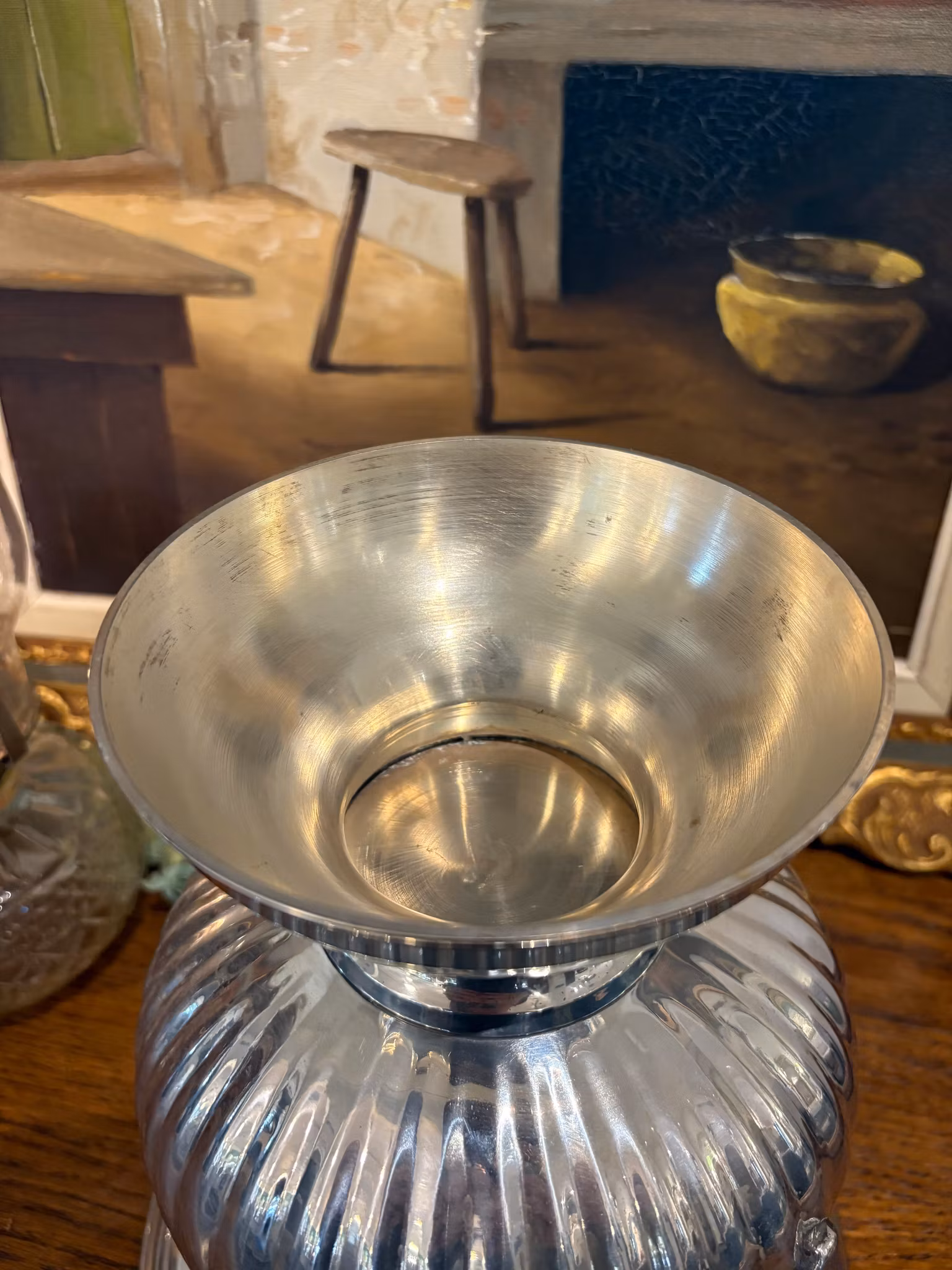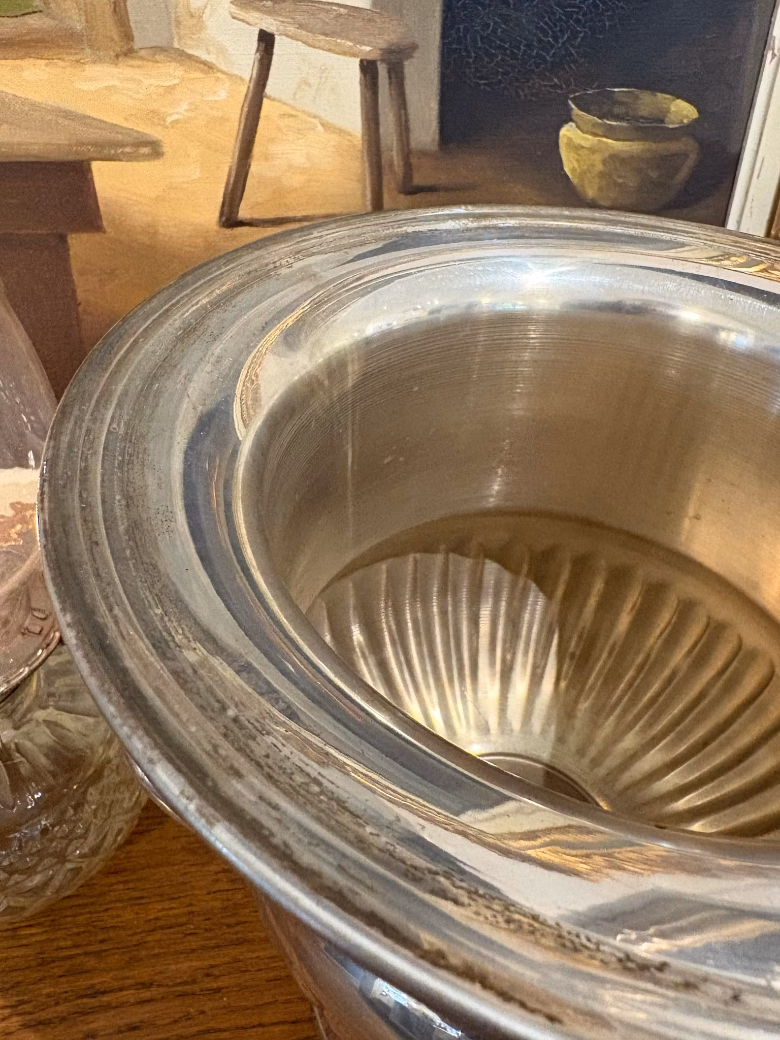Vacker vinkylare i vitmetall med charmig patina. Perfekt för att servera vin med stil och som dekorativ detalj på bordet.