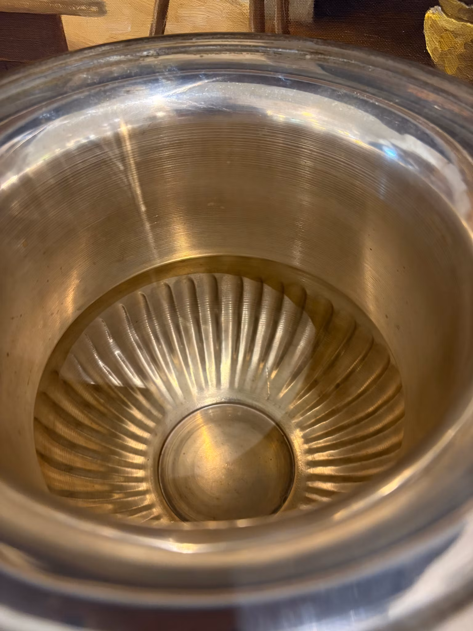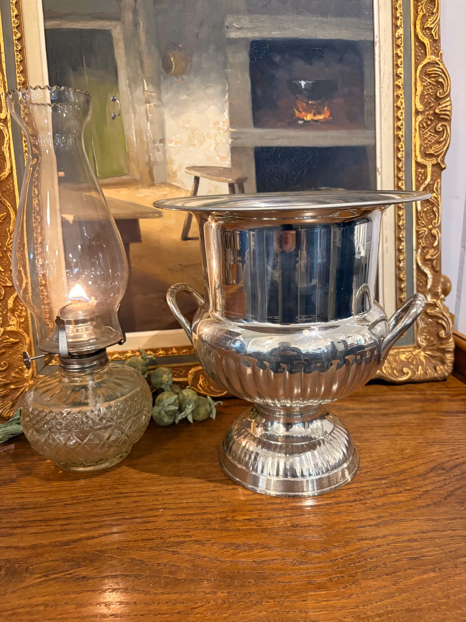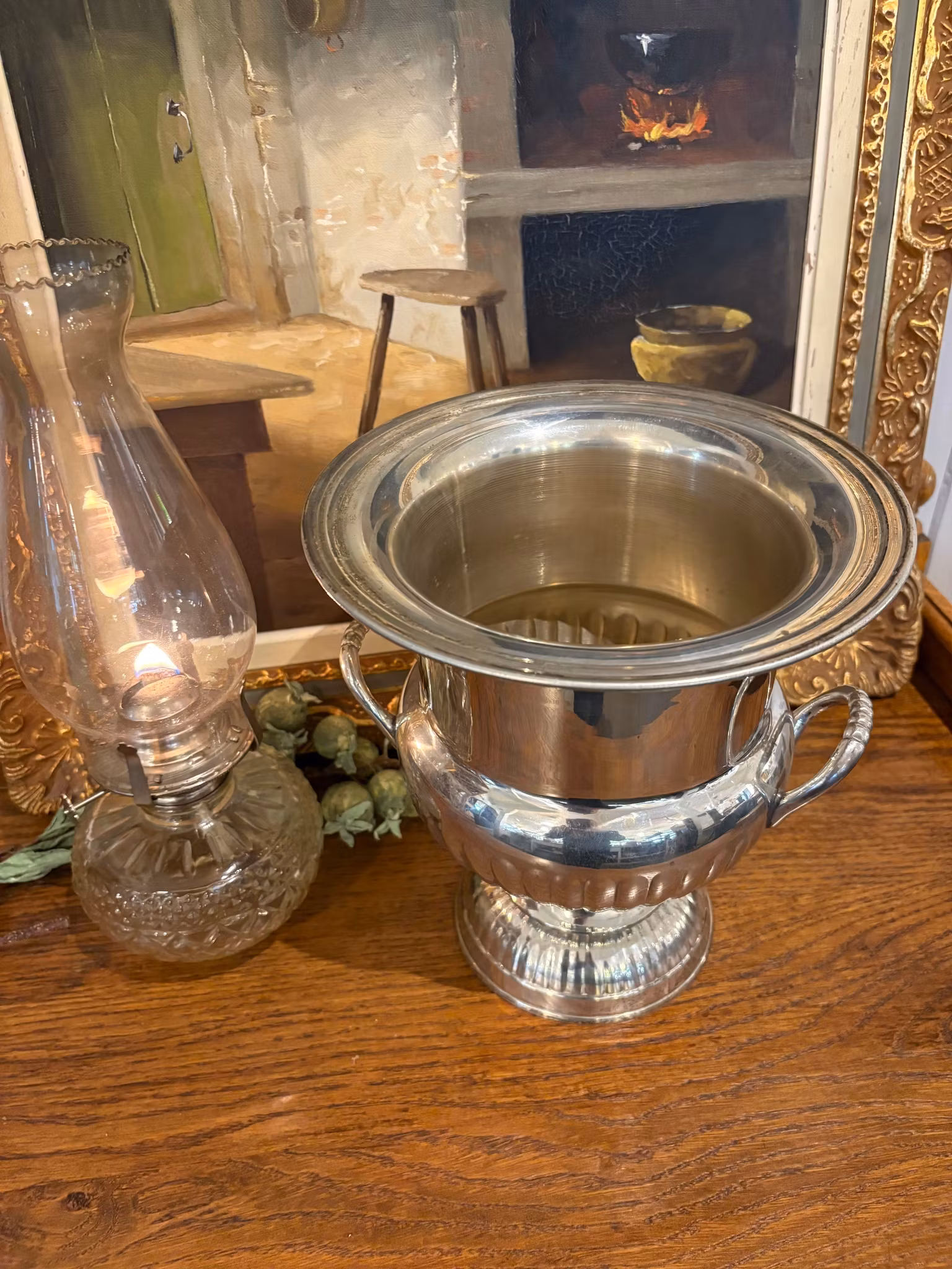 Vacker vinkylare i vitmetall med elegant form och charmig patina. Den generösa storleken gör den praktisk samtidigt som den blir en dekorativ detalj på bordet eller vid serveringstillfällen. Perfekt för att servera vin med stil och ge dukningen en sofistikerad känsla.