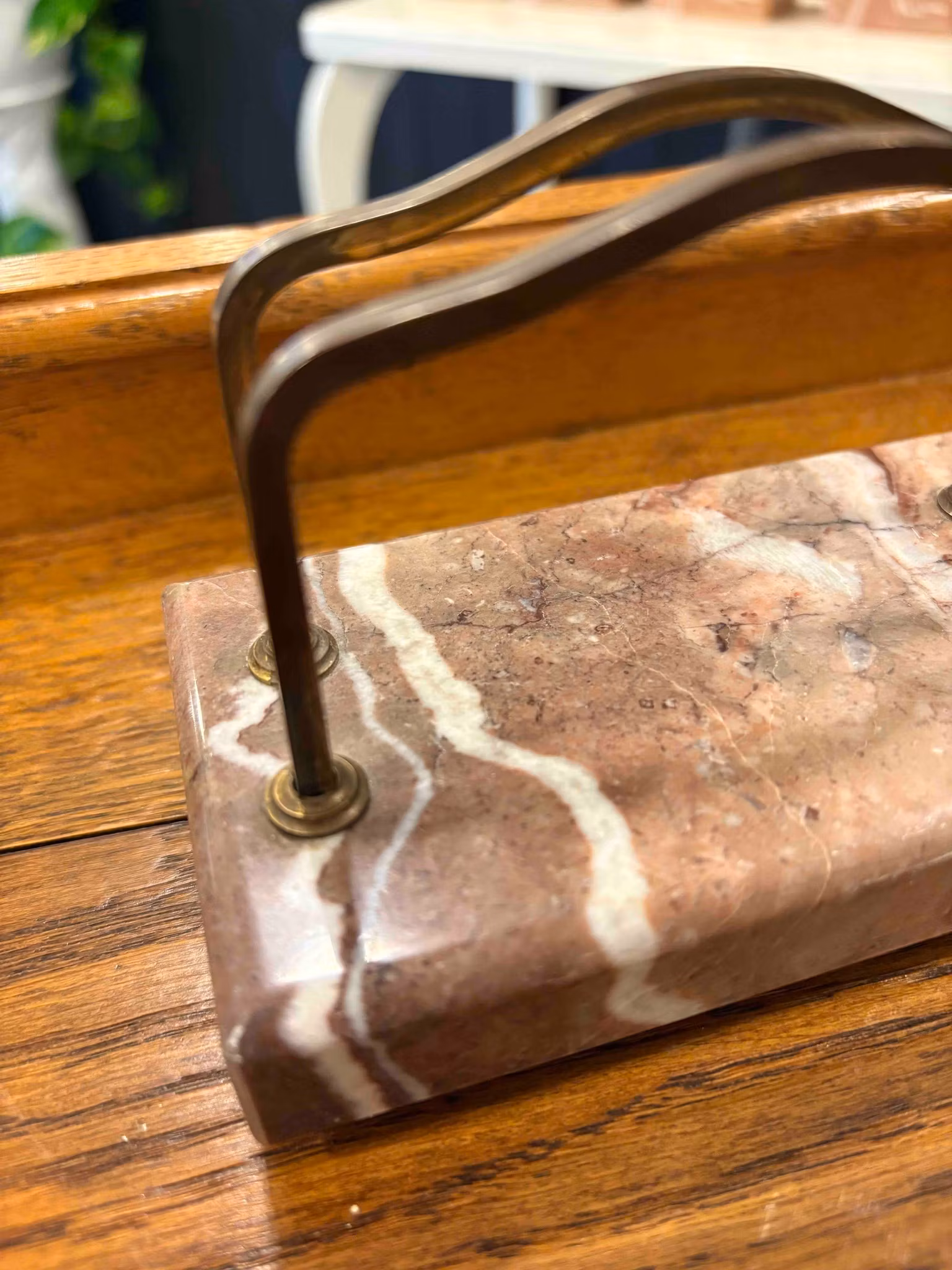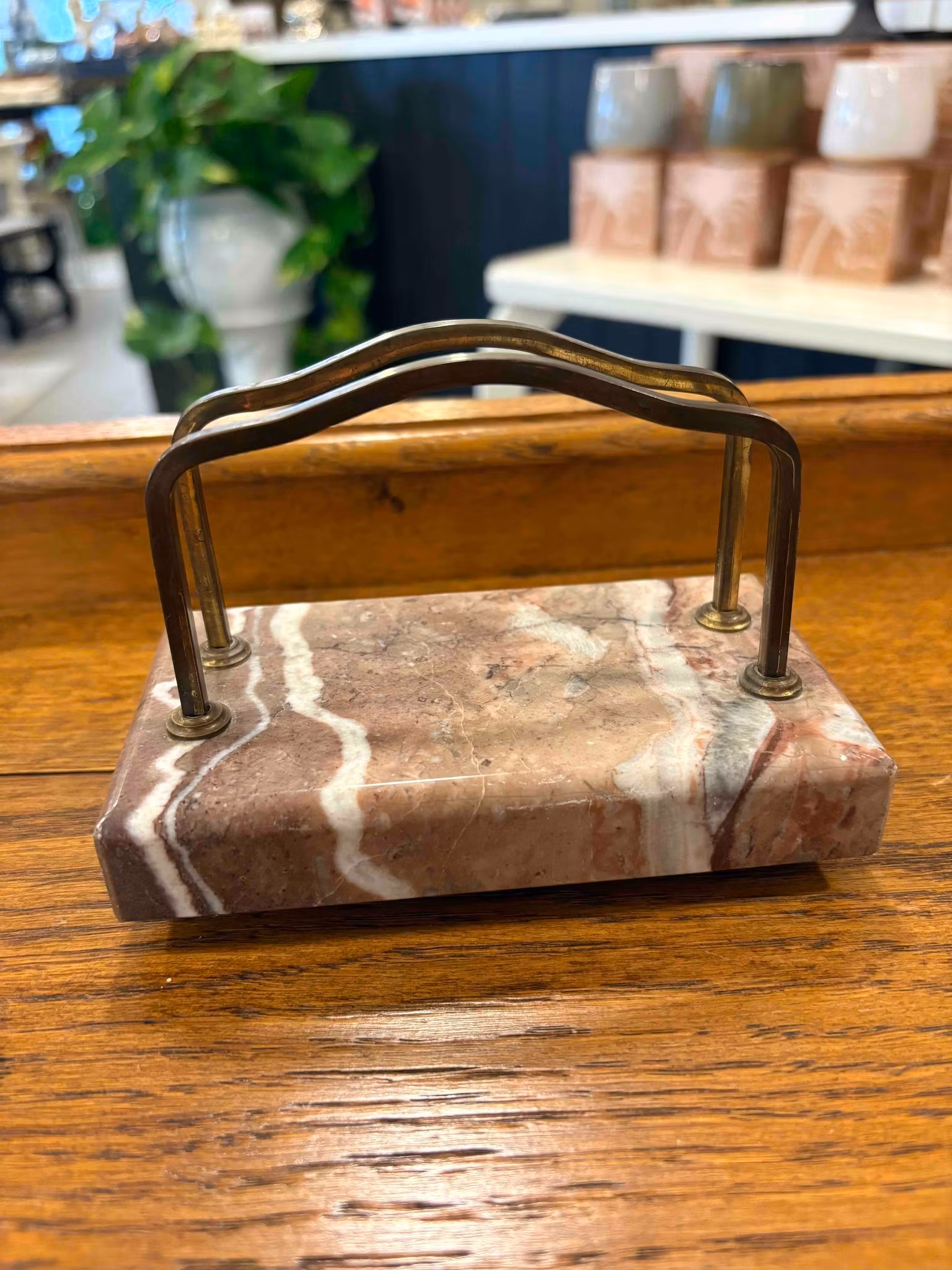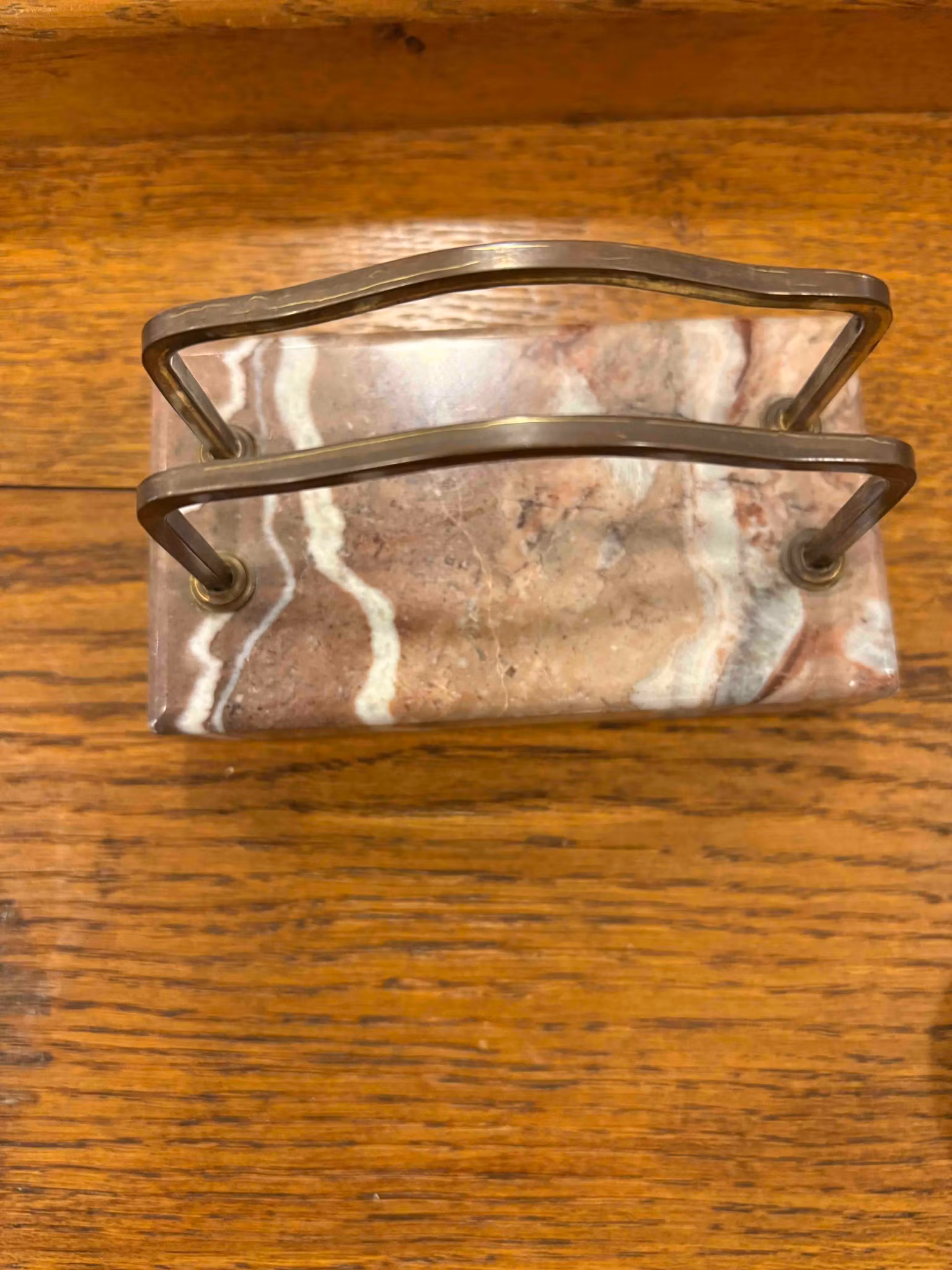 Vackert brevställ i metall och sten. Stilfull och tidlös design – perfekt som skrivbordsdekoration eller för förvaring av brev. H ca 9,5 cm, L ca 13 cm. Fint sk