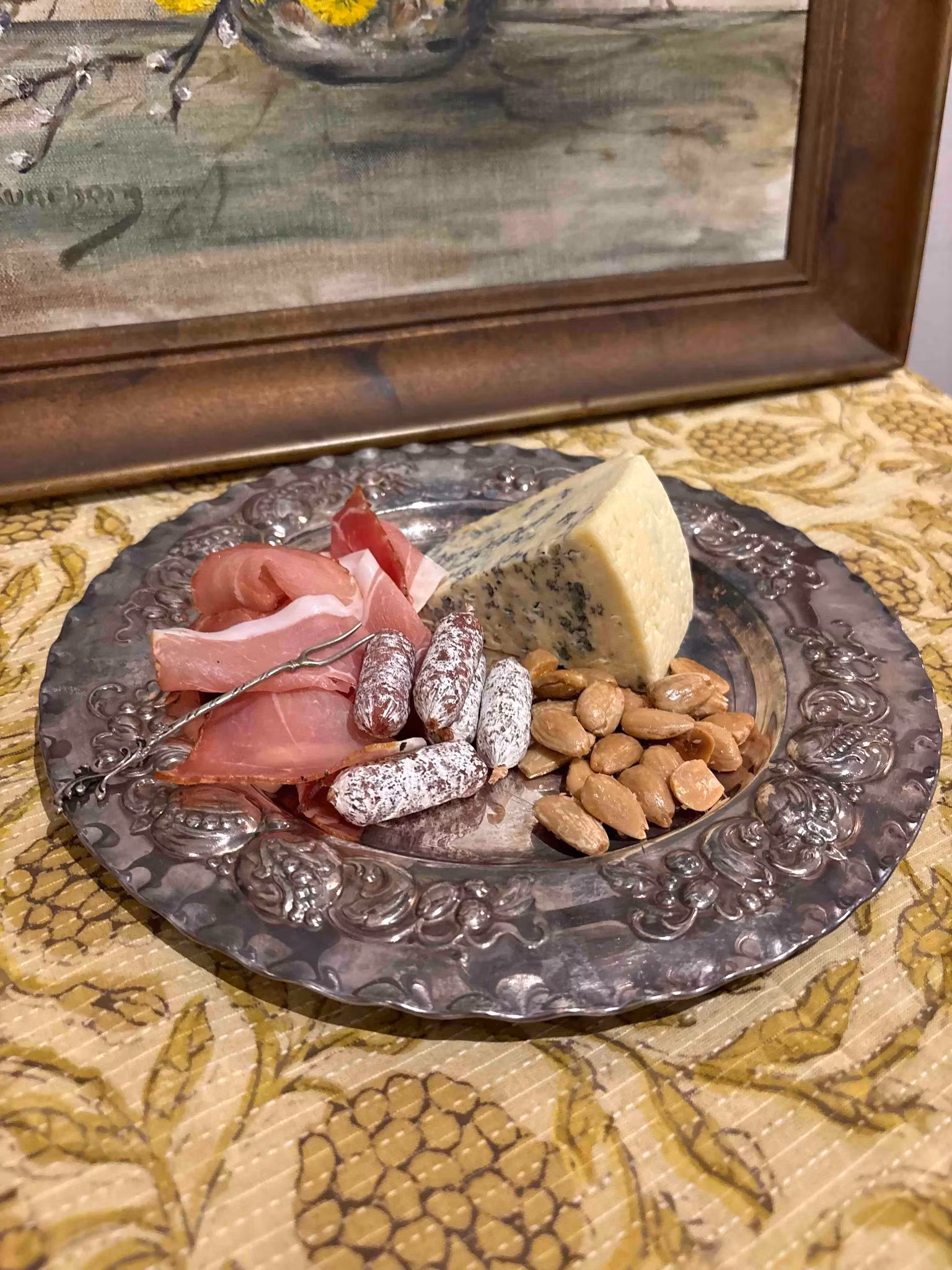 Vackert fat i nysilver med fina detaljer. Perfekt för servering av chark och plockmat. Charmigt bruksskick som ger karaktär till dukningen.