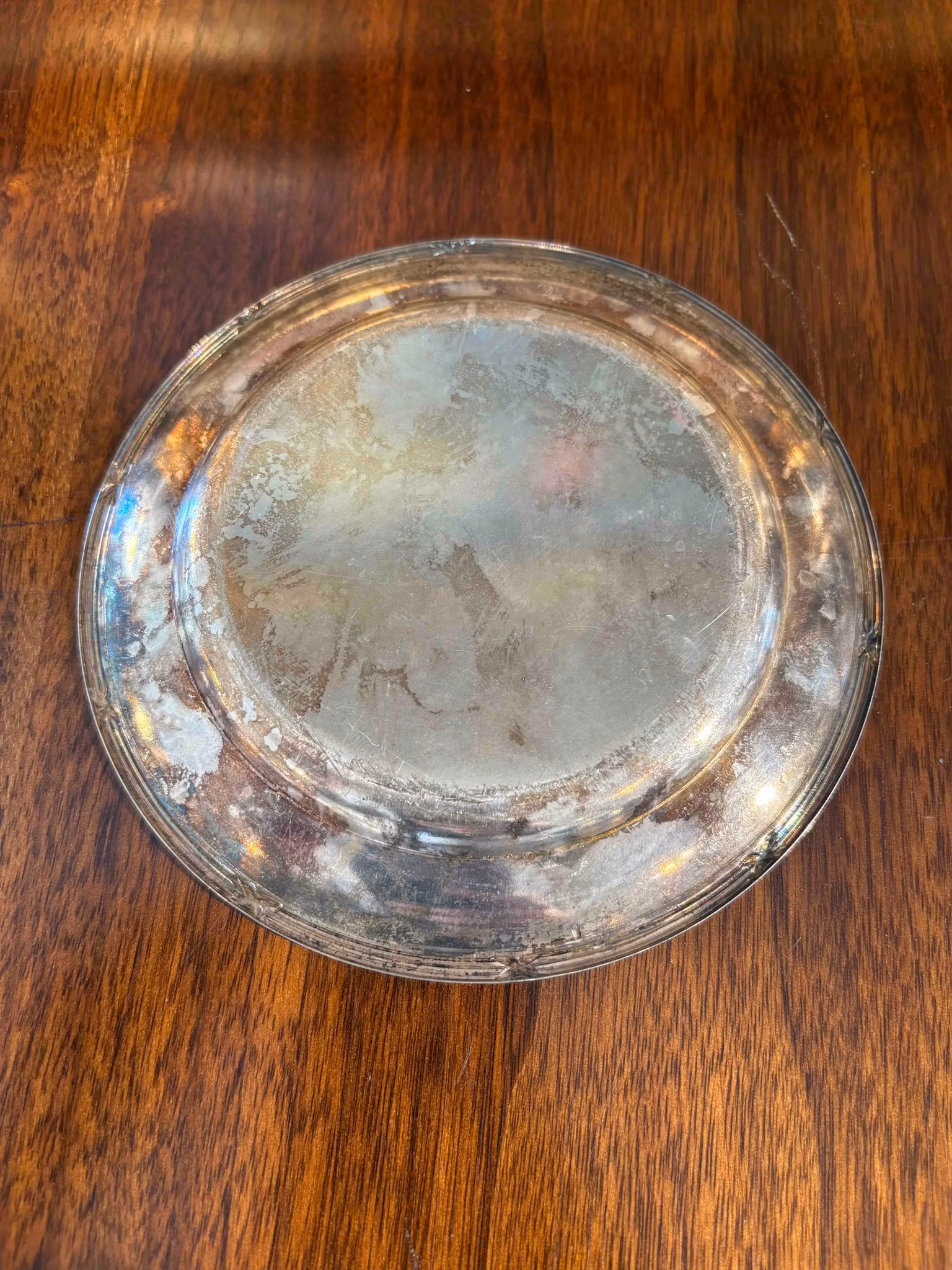 Fat/underlägg i nysilver är en vacker och tidlös detalj som tillför en mjuk lyster till dukningen eller inredningen. Den blanka ytan reflekterar ljuset fint och ger ett elegant uttryck, samtidigt som den nätta storleken gör det lätt att placera i olika sammanhang.