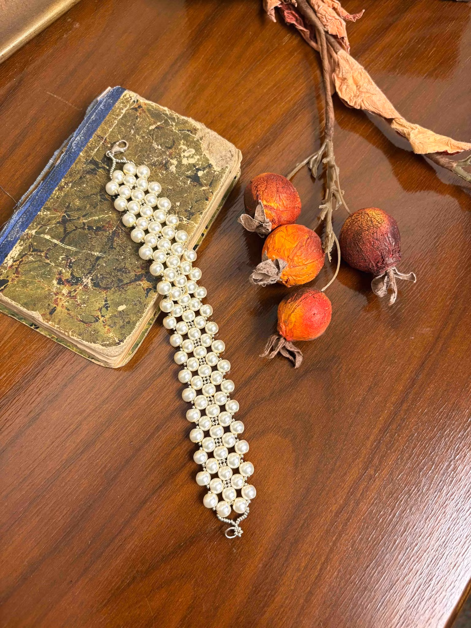 Vackert pärlarmband, ca 20 cm långt inklusive knäppe, i fint bruksskick. Elegant och tidlöst smycke som passar både vardag och fest.